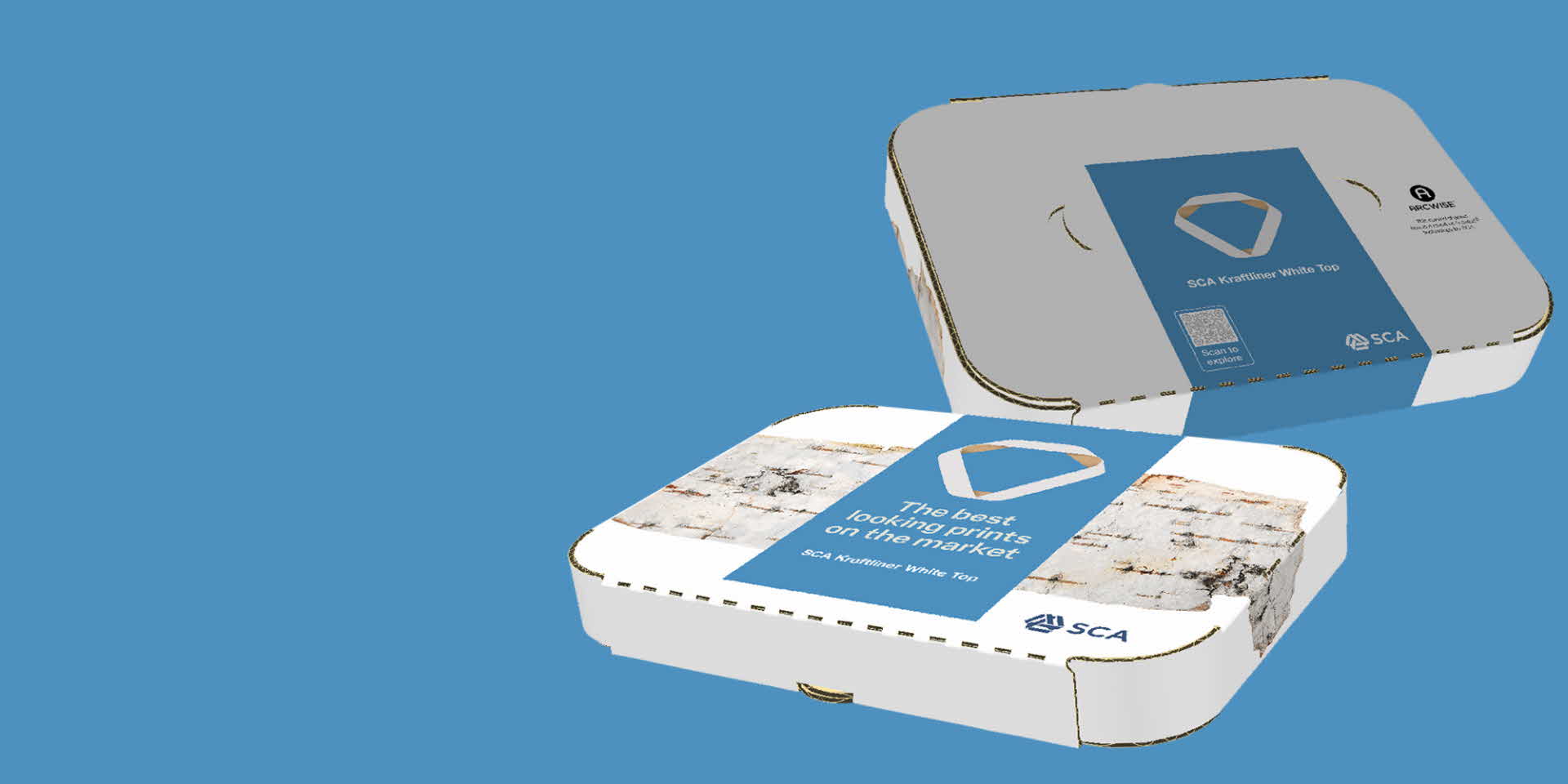 Interaktiva förpackningar förlänger och förstärker kundupplevelsen. Vår demobox för SCA Kraftliner White Top är mer än bara en låda, förpackningen fungerar som ett ställ för demokorten men varför inte använda den till konst eller fotografier - den passar också en liten läsplatta. Designen och de böjda hörnen är möjliga tack vara Arcwise® teknologi - en innovation från SCA.